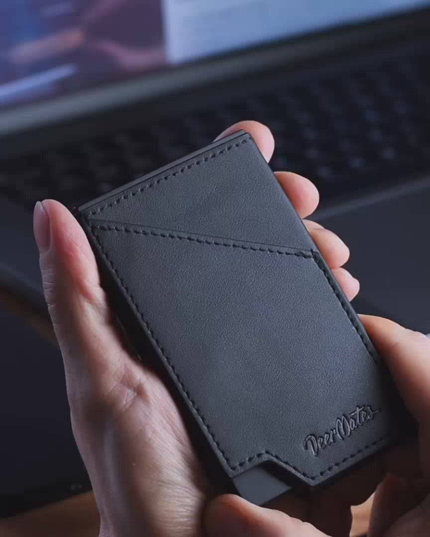 Portafoglio ultra-sottile in pelle vegana di alta qualità con protezione RFID.